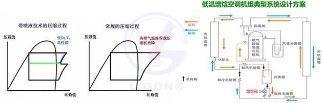 b、.補氣噴氣增焓功能,能確保-30強勁工作,普通空調通過增焓配件可達低溫室高效制熱功