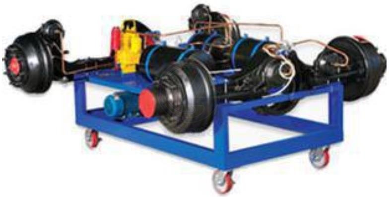 臺架結(jié)構(gòu):試驗臺由機架、氣壓制動系統(tǒng)總成兩部分組成;制動系統(tǒng)零件置于機架之上,結(jié)構(gòu)完整、與實車相同。