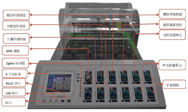 物聯(lián)網(wǎng)智慧農(nóng)業(yè)綜合實訓系統(tǒng)實現(xiàn)了農(nóng)作物生長環(huán)境信息(包括二氧化碳、光照度、溫濕度和土壤參數(shù)等)采集和控制響應、灌溉系統(tǒng)控制、數(shù)據(jù)計算和管理等功能,并支持遠程WEB、移動手持設備訪問和控制等。使學生在實訓過程中深入的理解物聯(lián)網(wǎng)相關技術,在現(xiàn)代農(nóng)業(yè)領域中應用的方法和過程等諸多環(huán)節(jié),激發(fā)學習興趣,并通過系統(tǒng)開放式的環(huán)境,自己動手實現(xiàn)學習、創(chuàng)新及應用。