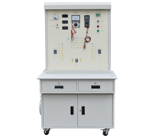 (1)實(shí)訓(xùn)臺(tái)主體部分采用全鋼結(jié)構(gòu),鋼板亞光噴塑,美觀耐用,臺(tái)面采用鋁塑板印制而成,整個(gè)實(shí)訓(xùn)臺(tái)由漏電保護(hù)開關(guān)、熔斷器、開關(guān)電源、數(shù)顯計(jì)時(shí)器、智能刷卡啟動(dòng)電路板、單繞組變壓器、多繞組變壓器、交流接觸器、數(shù)字電壓表、數(shù)字電流表、指針萬用表、數(shù)字萬用表、照明日光燈、帶鎖開關(guān)、按鈕開關(guān)、負(fù)載電阻和安全接線柱等組成。