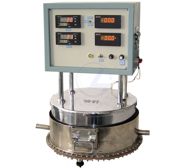 2、本裝置主要由循環冷卻水槽、上下均熱板、測溫熱電偶及其溫度顯示部分、液槽等組成。