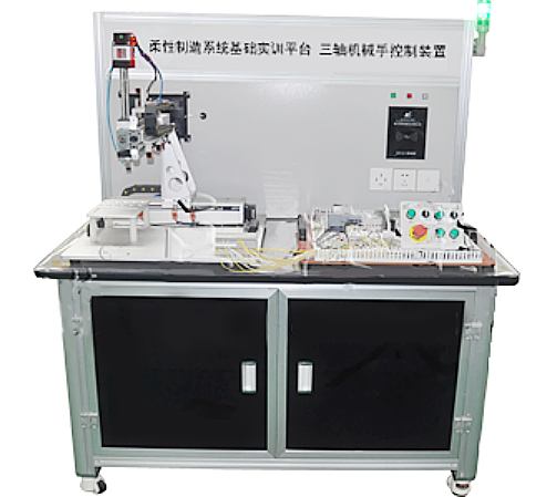 LGJ-SXS03型光機電一體化三軸機械手控制裝置由三軸聯(lián)動控制機械手,氣動吸盤,電氣控制系統(tǒng)等組成,可對各種具有平面形狀工件進行吸取搬運工作,帶限位停止功能。可通過人機界面(觸摸屏)編程進行同步監(jiān)控;設備集可編程控制器技術、傳感器技術、電機控制技術、氣動技術、觸摸屏技術于一體。X、 Y、Z軸定位執(zhí)行機構采用高精度集成模組,通過驅動步進電機使氣動吸盤在有效空間范圍內任意點吸取/擺放。學生可通過PLC編程,可完成復雜運動軌跡的控制,使實訓內容與生產實際更加接近。