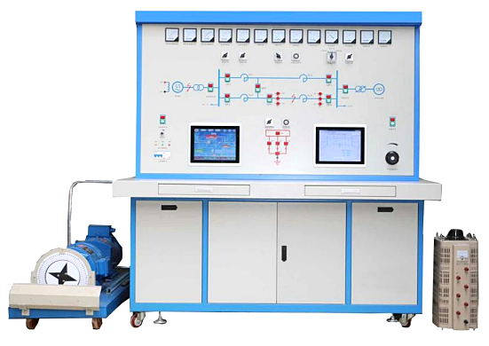 LG-DLK01型 電力系統綜合自動化試驗臺是一個自動化程度很高的多功能電力行業培訓設備,它由發電機組、雙回路輸電線路、無窮大電源等一次設備組成,可構成發電機與無窮大系統。系統之間有二種不同聯絡阻抗,供系統實驗分析比較時使用。該電廠培訓考核系統包括一套發電機組、手動調速、同期、線路模型、微機勵磁調節器和無窮大電源組成一個單機——無窮大系統,可以進行多個勵磁控制實驗,同期并網實驗,系統低頻振蕩實驗、電力系統、功率特性和功率極限實驗、電力系統暫態穩定實驗、單機帶負荷實驗等電工儀表實訓裝置。