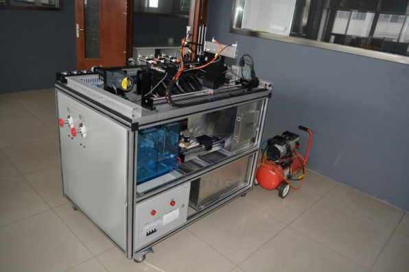 LGMX-08型 機(jī)電液綜合實(shí)驗(yàn)實(shí)訓(xùn)裝置是針對(duì)機(jī)電一體化綜合實(shí)訓(xùn)裝置,由鋁合金導(dǎo)軌式實(shí)訓(xùn)臺(tái)、機(jī)電一體化、儀表校驗(yàn)與檢測(cè)、儀表自動(dòng)化、過(guò)程控制、熱處理爐控制教學(xué)的要求而研發(fā)的。設(shè)備對(duì)象分上下兩層,主要包含四大功能部分,分別為液位儀表控制、液位溫度控制、熱處理控制及運(yùn)動(dòng)控制部分。設(shè)備結(jié)構(gòu)分為上下兩層。下層為液位儀表控制系統(tǒng)、液位溫度控制系統(tǒng)、熱處理系統(tǒng)。上層為運(yùn)動(dòng)控制部分。涵蓋了PLC、氣動(dòng)控制、電機(jī)傳動(dòng)、電磁鐵控制、位置控制、傳感器檢測(cè)等學(xué)科,是實(shí)際工業(yè)現(xiàn)場(chǎng)生產(chǎn)設(shè)備的微縮裝置。基于多種傳感器的檢測(cè)及旋轉(zhuǎn)編碼器的精確定位,多種電機(jī)(步進(jìn)、伺服、普通減速電機(jī)、雙速電機(jī))控制方式,實(shí)現(xiàn)對(duì)不同材質(zhì)、不同顏色物體的分揀,6個(gè)方向機(jī)械手控制控制;并具有模擬化工過(guò)程自動(dòng)化控制、儀表檢測(cè)實(shí)訓(xùn)、PID調(diào)節(jié)等多種過(guò)程控制方式;裝置還具有冶金行業(yè)的熱處理爐控制方式、能夠模擬熱處理爐的冶金控制,小車(chē)裝卸料控制。適合于自動(dòng)化、電氣自動(dòng)化、電氣工程等專(zhuān)業(yè)的《運(yùn)動(dòng)控制》、《氣壓系統(tǒng)》、《機(jī)電一體化技術(shù)》、《檢測(cè)與轉(zhuǎn)換技術(shù)》、《可編程控制技術(shù)》、《儀表檢測(cè)》《傳感器技術(shù)》《過(guò)程控制》《工業(yè)自動(dòng)化》《熱處理爐控制》《冶金控制技術(shù)》等課程開(kāi)設(shè)實(shí)訓(xùn)課。