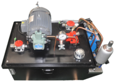 液壓泵站由三相電機(jī)、變量葉片泵、單向閥、風(fēng)冷器、空氣濾清器、油溫油面計(jì)、精密過濾器、壓力表、蓄能器、泄壓閥組等組成。