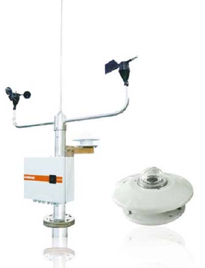 該裝置由風速傳感器、風向傳感器、日照輻射表、測溫探頭、控制盒及支架組成,適用于氣象、軍事、航空、海港、環保、工業、農業、交通等部門測量水平風參量及太陽輻射能量的測量。可測量環境溫度、風速、風向和輻射強度等參量,其 RS485 通訊接口可接入并網監控裝置的監測系統,實時記錄環境數據。